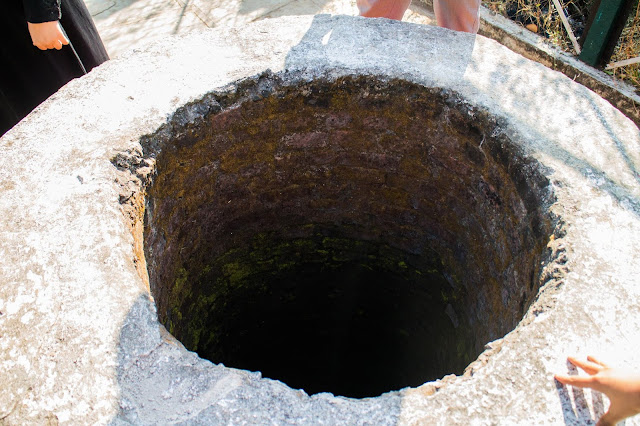 These brightly painted wells each still taps the clear water flowing below.